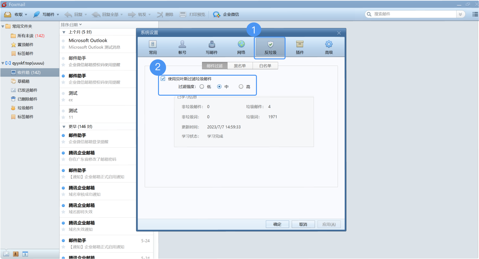 一、Foxmail反垃圾设置: