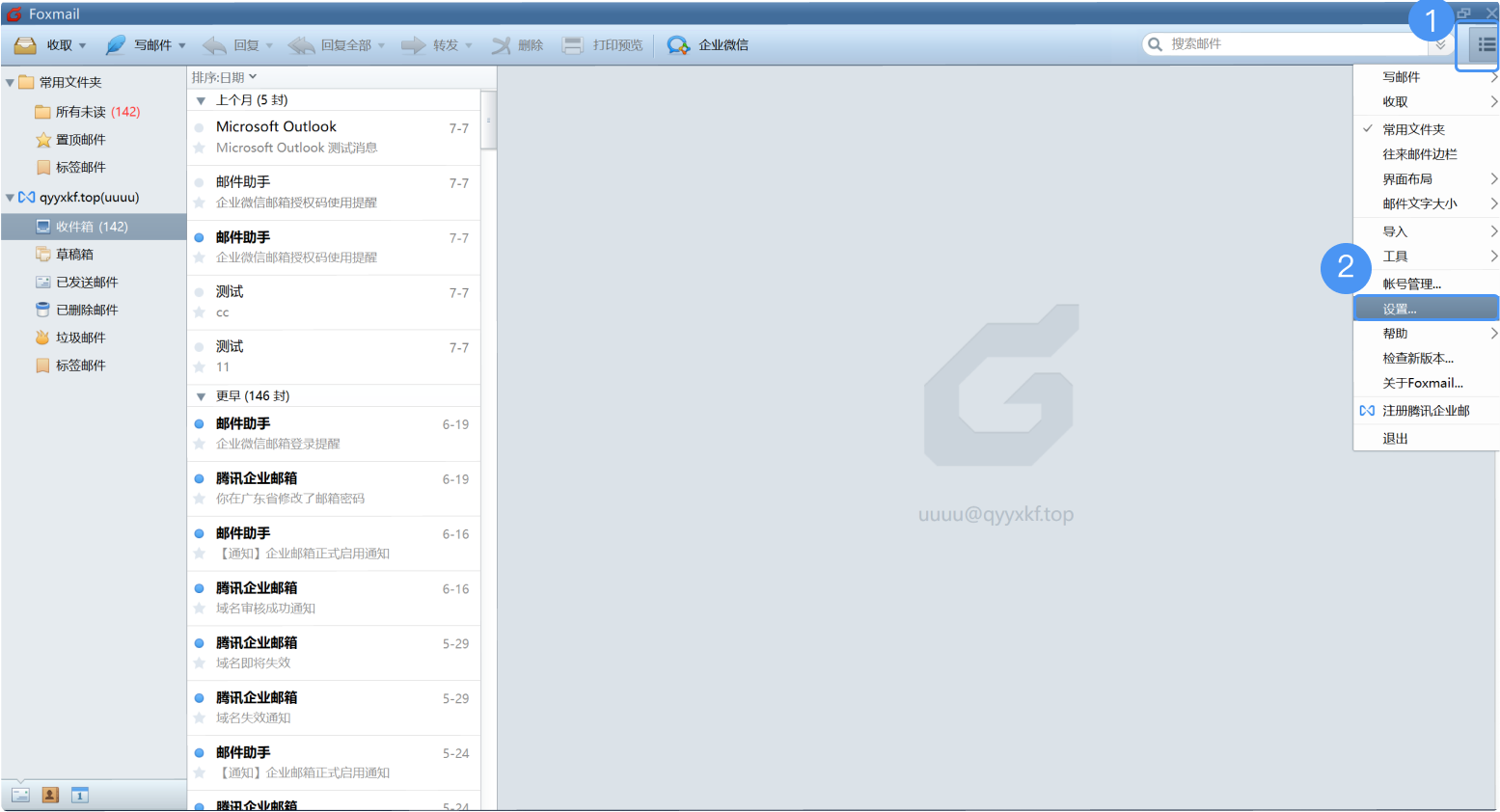 打开foxmail点击右上角下拉按钮,在弹出的菜单项中选择【设置->反垃圾->邮件过滤】可以选择去掉“使用贝叶斯过滤垃圾邮件”和过滤强度改为“低”。