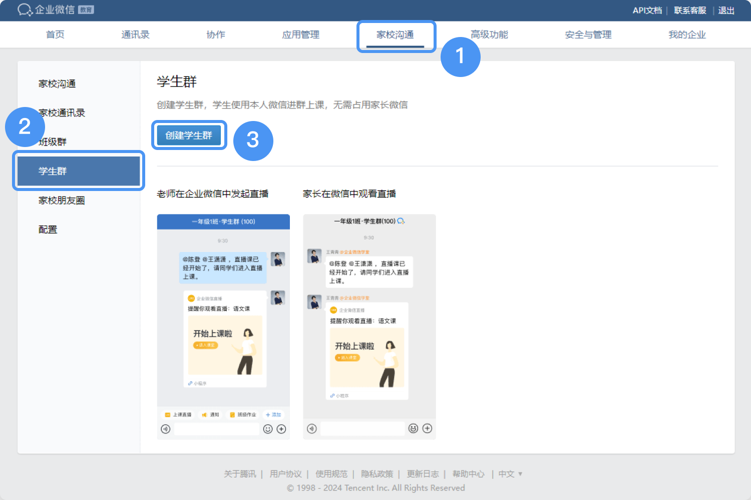 1、创建学生群时,当前班级有班级群的话,会在班级群下发通知提醒邀请学生入群,若没有班级群,会在家长微信的学校通知下发提醒。