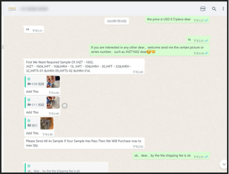 我们成功联系到这位越南采购商,第一次发了邮件,没有回复之后,我们并没有放弃,过了几天,我们再次通过软件挖掘出他们的社媒信息,添加了他们决策人的WhatsApp,诚恳的向他说明,别克公司的产品无论是质量价格、供货时间都非常符合他们的要求,并给他发送了产品图片和视频。
