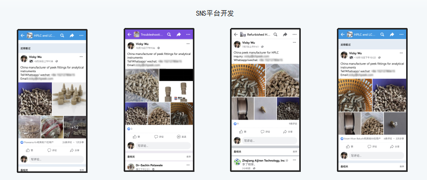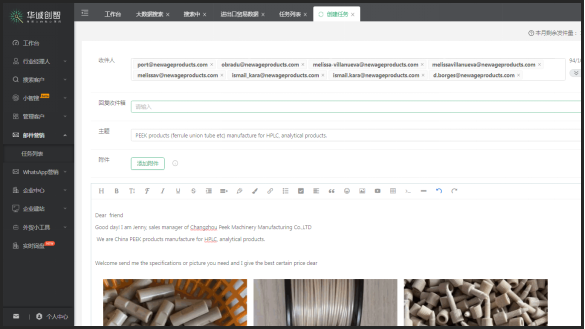 我们挑选了一批潜在采购商名单,利用匹配到的人员名字和公司网址的后缀,搜索出他们的邮箱和电话,查看了他们的社媒信息,并发送了产品信息。