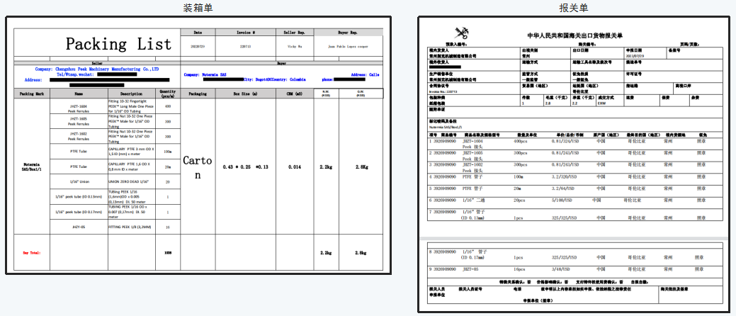 我们为客户定制了全套的出口资料,包括代理报关委托书、申报要素清单、定制化专用发票、海关出口货物报关单以及装箱单等单据资料。