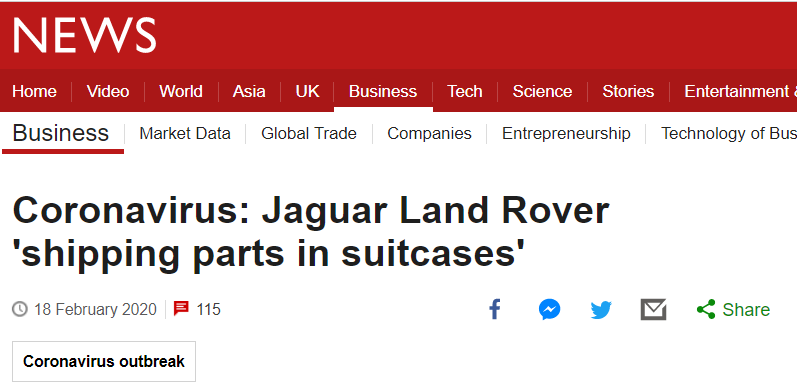 路虎首席执行官(CEO)拉尔夫·施韦德(Ralf Speth)透露,目前他们英国工厂正面临无零件可用的困境,不得不临时改用空运以行李箱装货的形式,从中国带回一些急用零配件。
