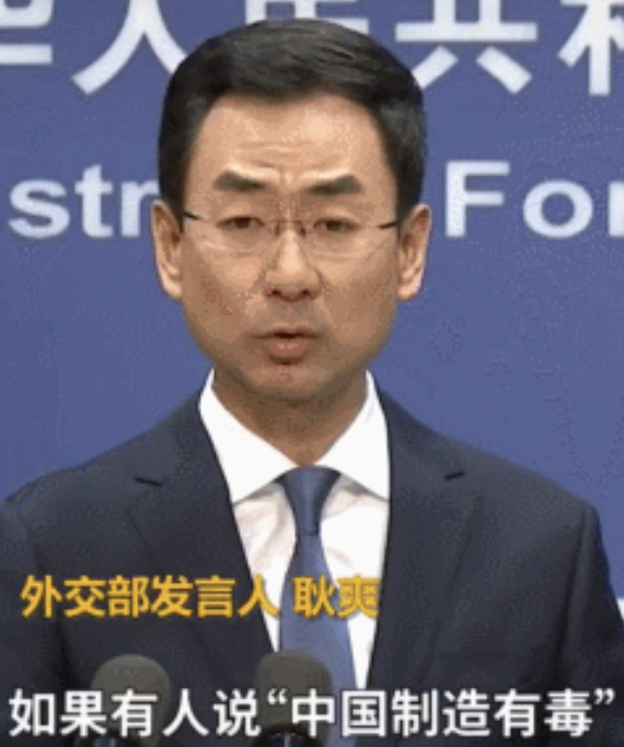这能忍?中国外交部表示不能忍。外交部发言人耿爽直接在3月20日记者会上一连用了四个成语进行批驳:“我不知道这些人发表这种荒谬无知、耸人听闻言论的目的是什么,是哗众取宠,还是欺世盗名?”耿爽表示:“请说这种话的人面对新冠肺炎疫情肆虐,不要戴中国制造的口罩,不要穿中国生产的防护服,不要用中国出口的呼吸机,以免染上病毒。”