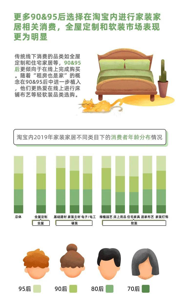 如果说以上种种差异,或许还受到年龄这一人口统计学指标的影响,不全然与代际相关。那么年轻人对全屋定制的偏好可能更说明问题,根据极有家与阿里妈妈联合发布的数据显示,在淘内进行全屋定制的消费群体中,90后与95后消费者的占比超过了一半。这个数据展现了一种趋势,即年轻人们希望为自己的家寻找独特且统一的设计风格。有些原本在线下的家装设计企业也抓住机会开启了网店。主打北欧风的良十空间设计,2019入驻淘宝线上,通过协调线下门店,提供全屋定制服务,首年业绩破亿,与极有家平台共同实践了淘宝新零售的商业闭环。