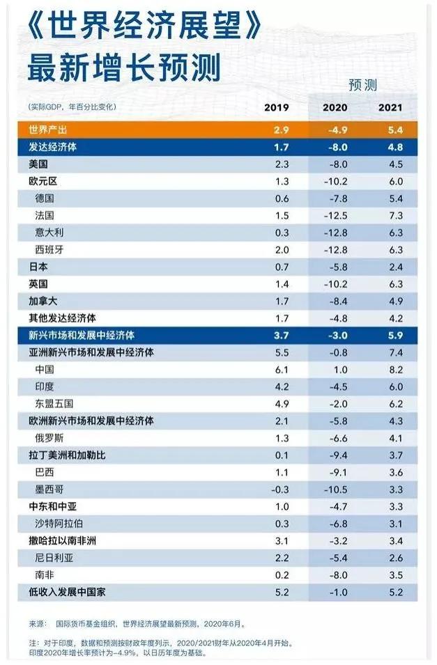 最后看看西边邻居印度。IMF预测,2020年,印度GDP将下滑4.5%,同时该组织预测,印度经济在2021年回升到6.0%。