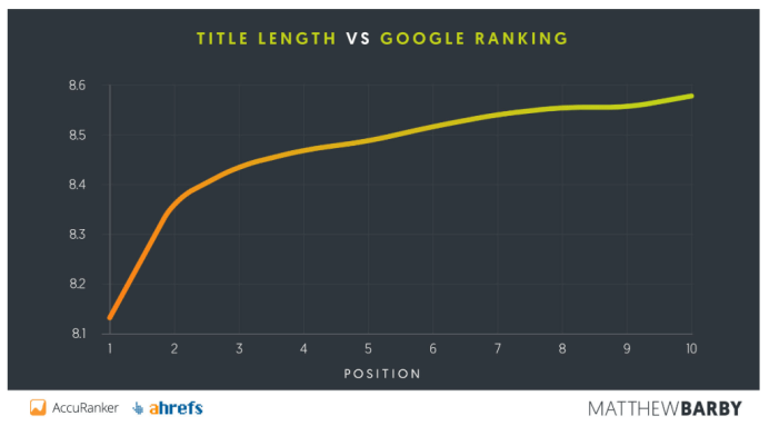 先来看一张Ahrefs的大数据统计图,关于标题长度和排名的影响。