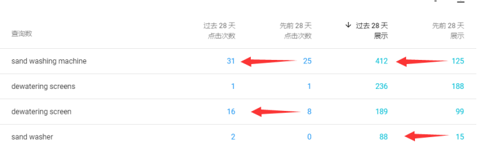 这个是这位同学做了标题修改后核心词数据的变化。展示都是翻倍增长,排名跨页面提升。