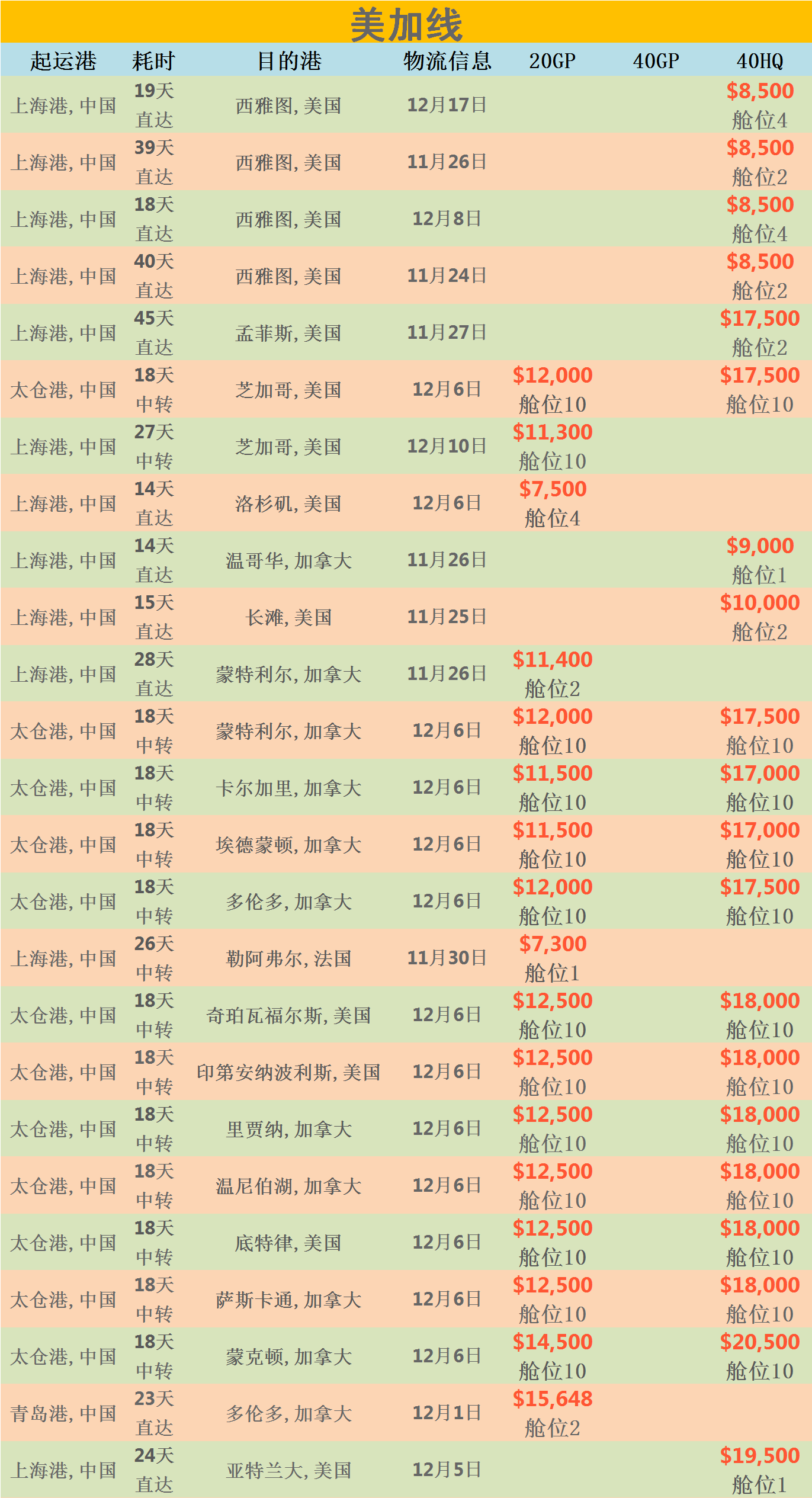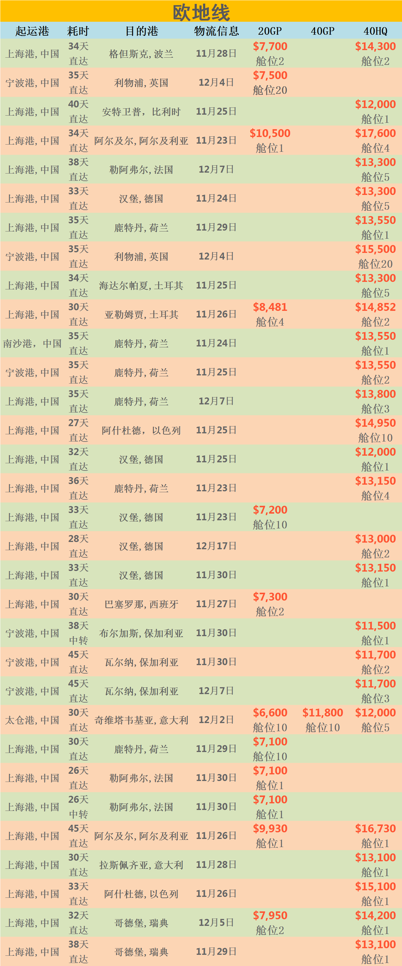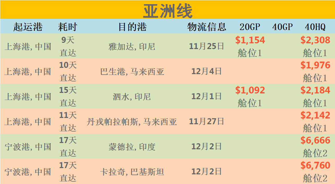 运费:常见国家的船运费报价