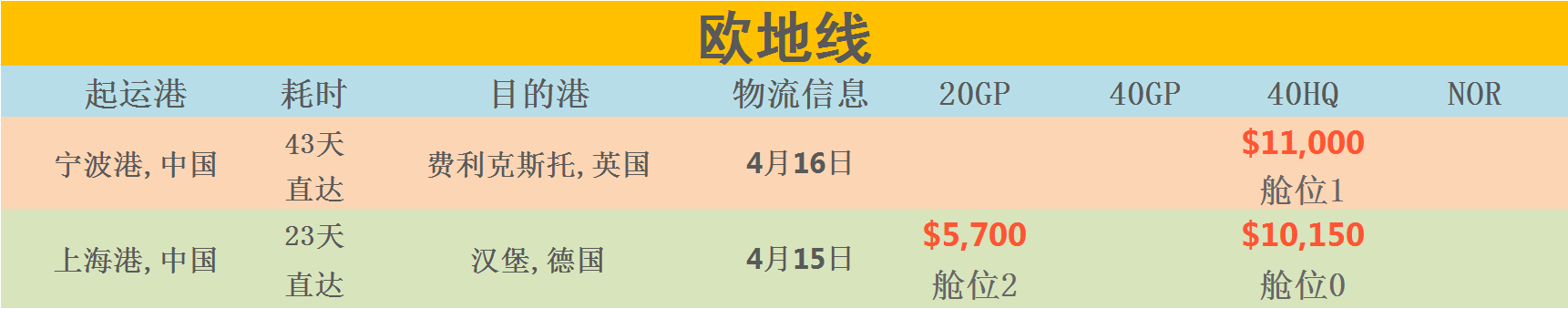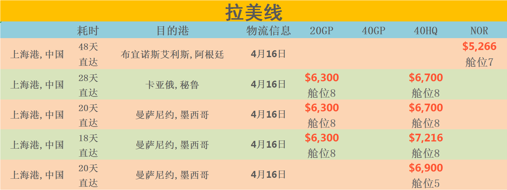 运费:常见国家的船运费报价