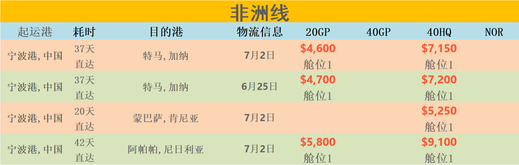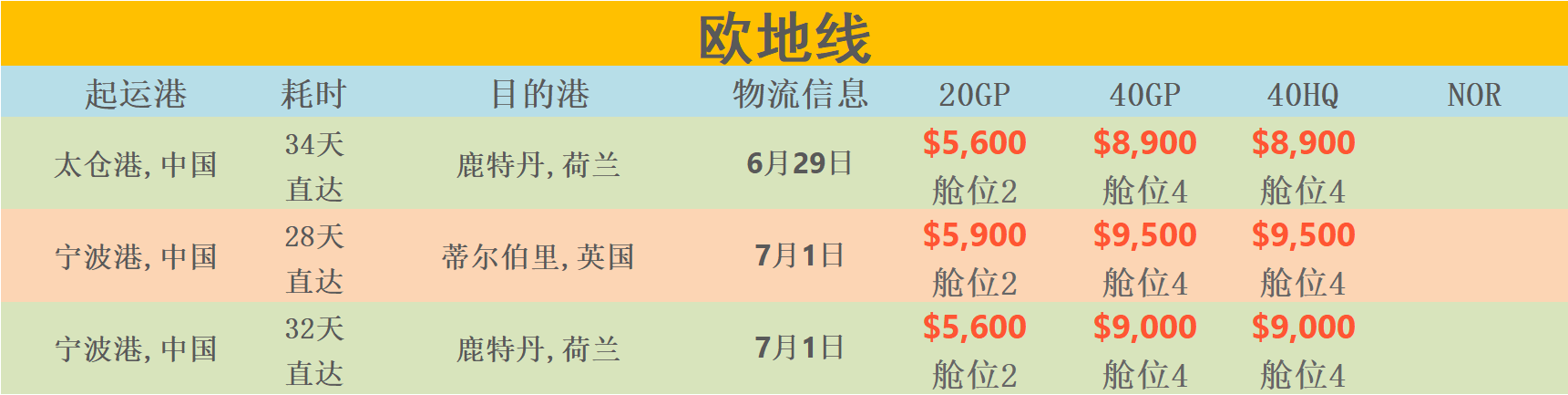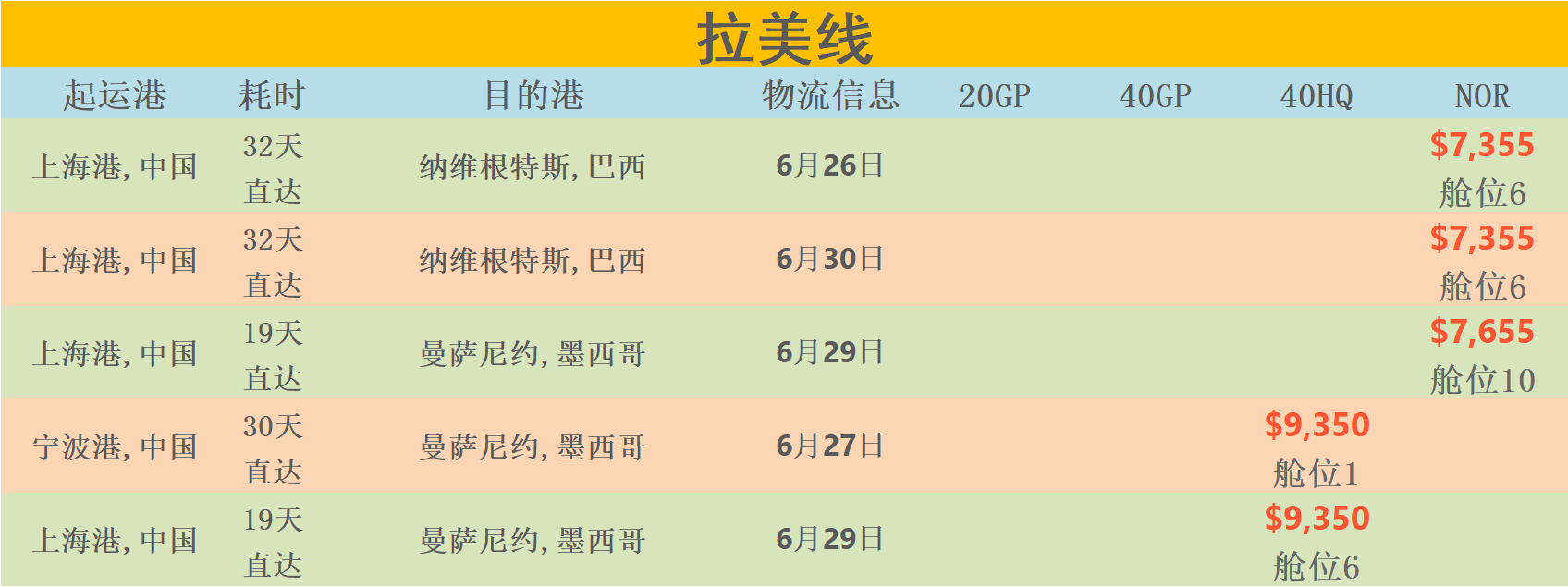 运费:常见国家的船运费报价