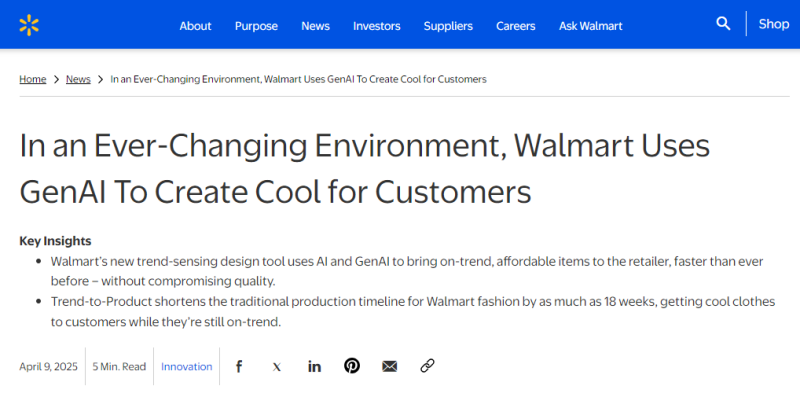 沃尔玛推出生成AI工具 加速服饰创意开发