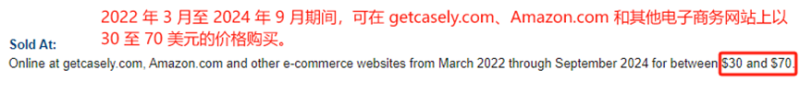 2022年3月至2024年9月期间,Power Pods充电宝在亚马逊、getcasely.com等电商网站上持续售卖,价格在30至70美元之间。由于体积小、携带方便,该款产品也赢得了大批消费者的喜爱,两年多时间里累计售出了约429200件。