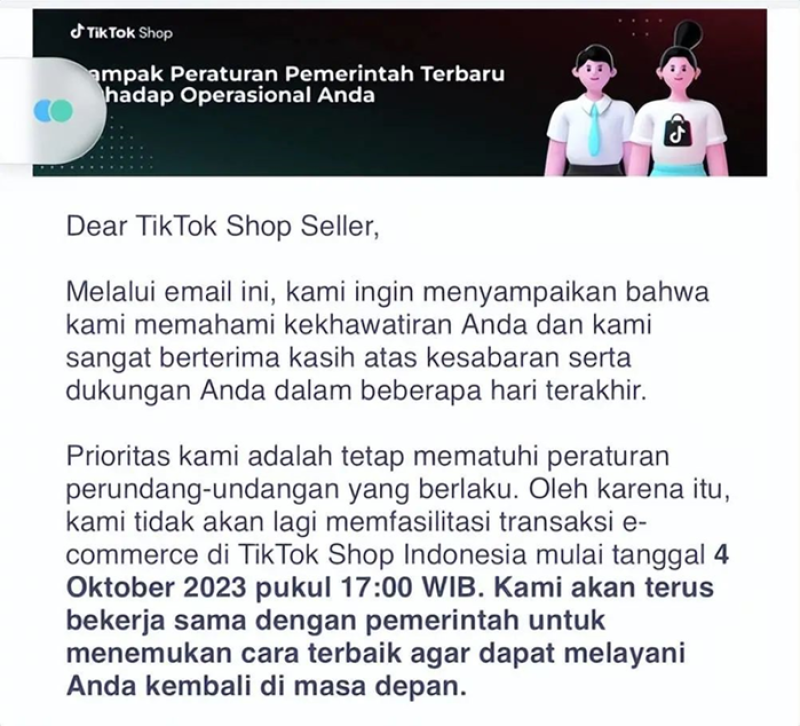 TikTok Shop印尼站关闭 图源:TikTok Shop