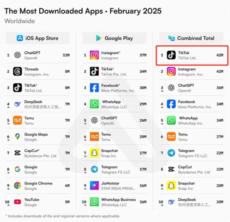 从整体上看,TikTok的全球布局也越来越健康,根据移动应用分析平台AppFigures发布的最新数据,今年2月,TikTok全球下载量依然位居榜首,包括iOS和Google端总下载量达到4200万次,与第二名的Instagram基本持平,这主要得益于东南亚用户群体的增长抵消了美国市场的潜在损失。