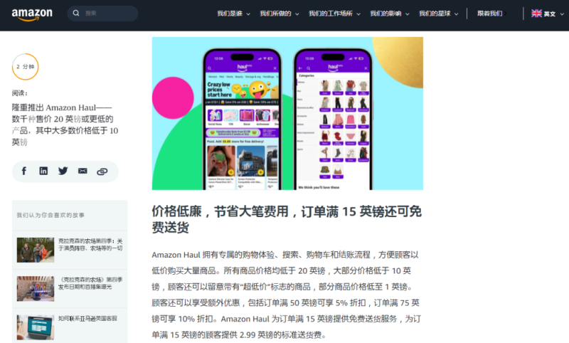 自去年11月于美国首次亮相后,Amazon Haul迅速在国际市场上崭露头角,该平台聚焦于为消费者提供高性价比的商品,其定位十分明确——以低价吸引追求实惠的消费群体。无论是日常生活用品,还是时尚服饰、小型电子产品等,都能在Amazon Haul上以意想不到的低价收入囊中。