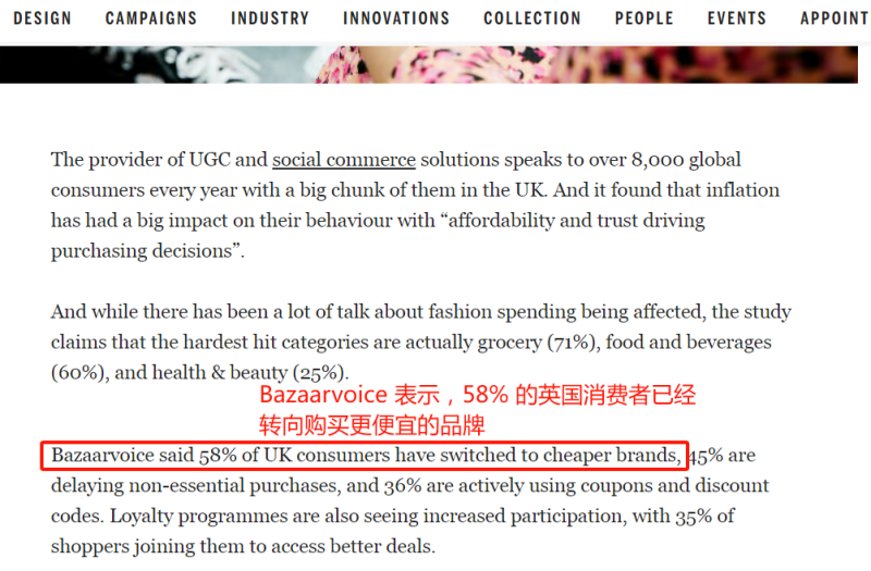 尤其是在经济形势不稳定的时期,低价商品能够帮助他们节省开支,满足生活需求。尤其是在通货膨胀的持续冲击之下,购买性价比更高的商品成为了人们的新追求。Bazaarvoice此前发布的报告就指出,全球8000多名消费者因通胀影响而改变购买习惯。其中,高达58%的英国消费者响而转向购买低价品牌,57%的英国消费者已永久转向购买自有品牌产品,这是因为自有品牌的产品价格往往较低。