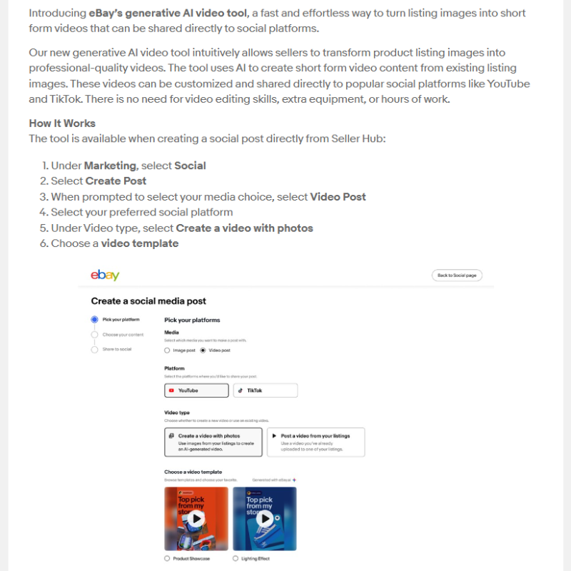 目前,该工具已面向美国卖家开放,并将作为eBay社交营销功能的一部分持续优化。平台强调,AI技术不仅简化视频制作流程,也为中小型卖家提供了低门槛的品牌推广方式,有助于在多个渠道同步建立品牌影响力。