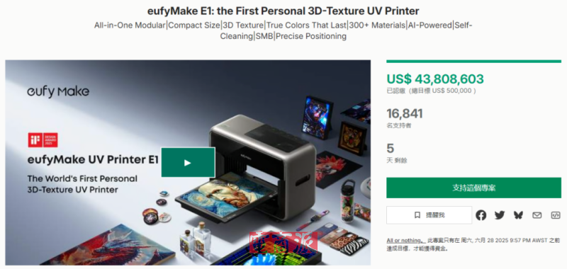 安克eufyMake E1众筹千万美金 图源:Kickstarter