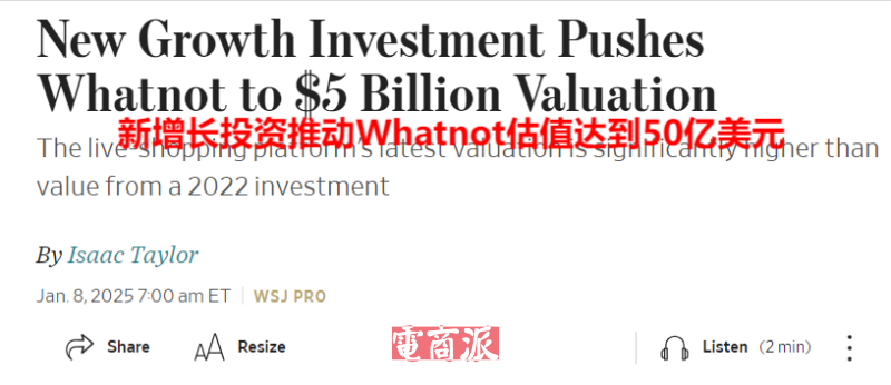 Whatnot估值近50亿美元 图源:WSJ