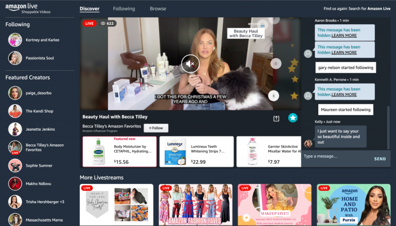 亚马逊直播功能 图源:Amazon