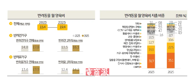就以丧葬费为例,当前宠物家庭平均丧葬费为46.3万韩元,较2023年的38万韩元增长22%,之所以会有这样的增长是因为直接埋葬的比例大幅下降,并且还有人选择将宠物遗骨做成纪念品,拉高了这一消费。