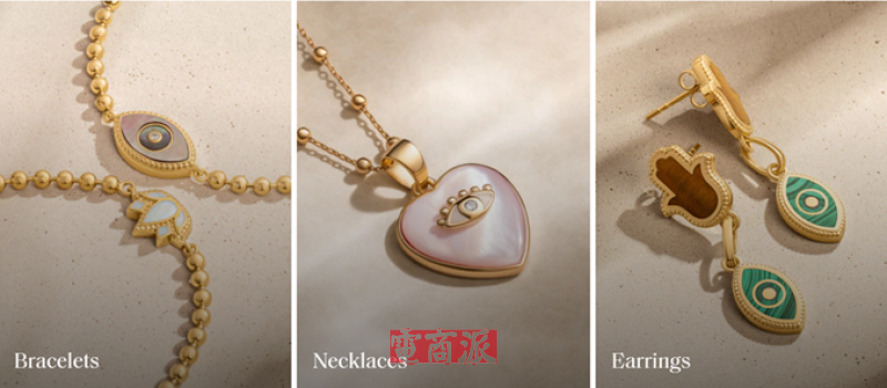 因此,Karma and Luck独立站展示的水晶产品,基本都被赋予各种“神奇功效”,比如象征因果提升的翡翠紫水晶手链、疗愈精神的脉轮颈链、象征心灵宁静的钻石哈姆萨耳环等等。