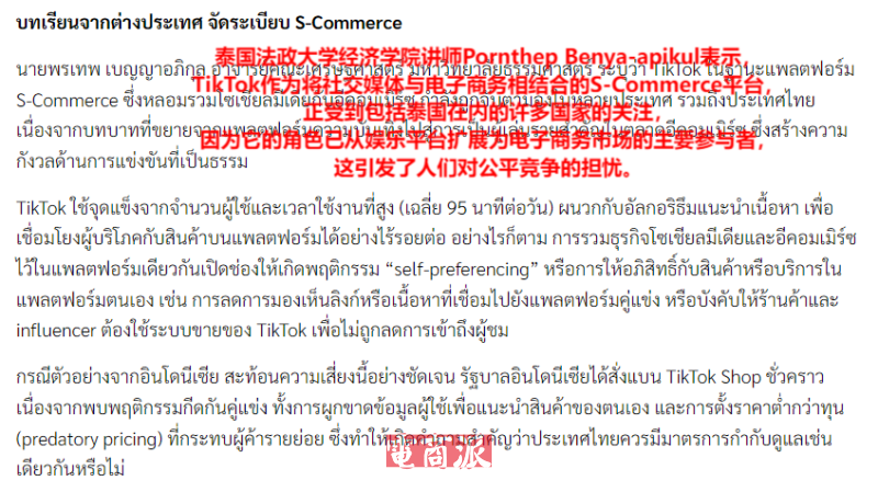 一些专家则表示,TikTok将社交与电商结合在一起,虽然能有效激发消费者网购热情,但长此发展,恐有垄断嫌疑。面对这一潜在风险,泰国或许要向印尼学习,让TikTok与TikTok Shop相互独立。