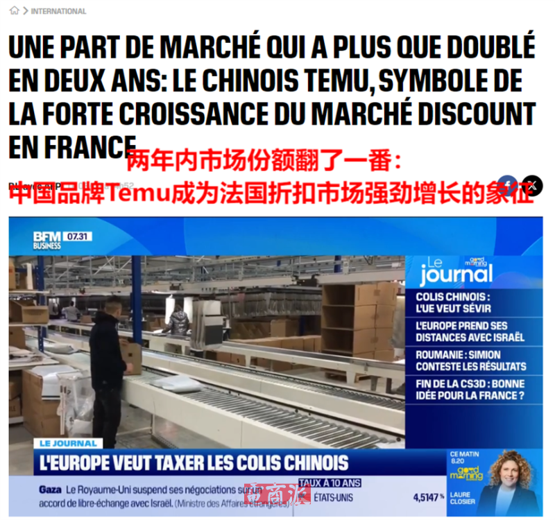 Temu法国市场份额翻倍增长 图源:bfmtv