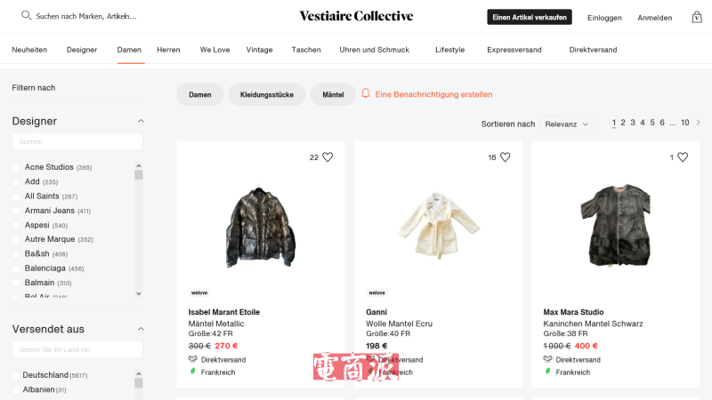 二手服装网站Vestiaire 图源:vestiaire collective