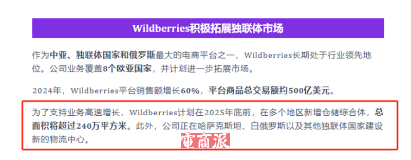 Wilsberries将在多地完善物流基础设施建设 图源:WILDBERRIES电商平台