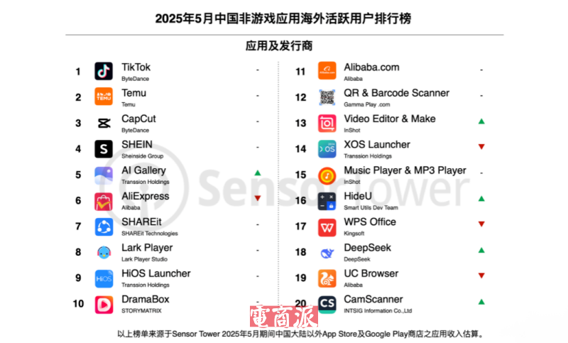 TikTok移动端MAU位居榜首 图源:Sensor Tower