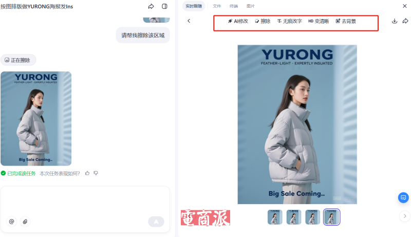 当然,需得注意,AI是人的发明物,在具体执行过程中,AI也不一定次次都能输出最完美的结果,这就需要手动做些细微修改。比如对生成的海报进行原位修改,擦除不想要的部分,选中特定文字修改内容等;或者对PPT的某个元素进行修改,跟自己在网上下载模板来修改没什么区别,总之是要让最后的生成结果更符合心意。