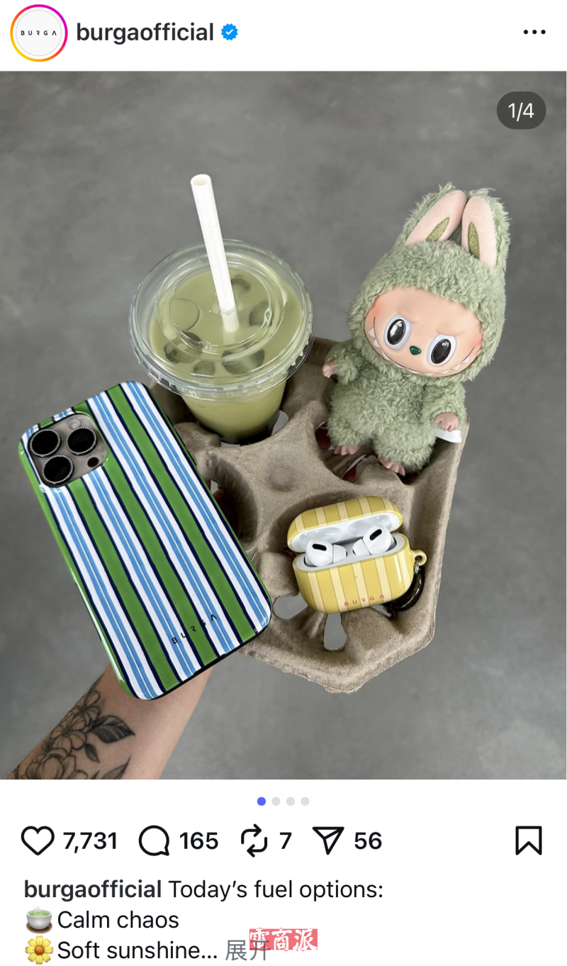 当然,Burga专注高端市场,自然是少不了要在营销方面多下功夫。在Instagram,Burga主要发布产品宣传海报,也时常结合热点话题出推文,比如带着Labubu同色系的手机壳出门;在Youtube,Burga一般发布精心制作的品牌广告,以及适合快速传播的短视频,既营造起Burga高端的品牌形象,又通过短视频传播扩大品牌声量。