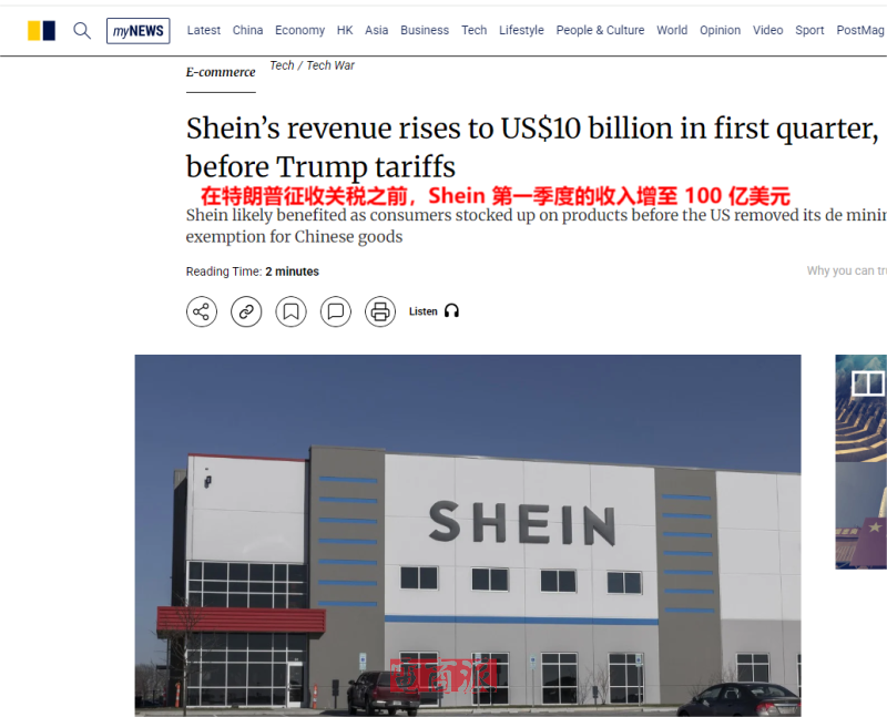 SHEIN一季度营收近100亿美元 图源:SCMP