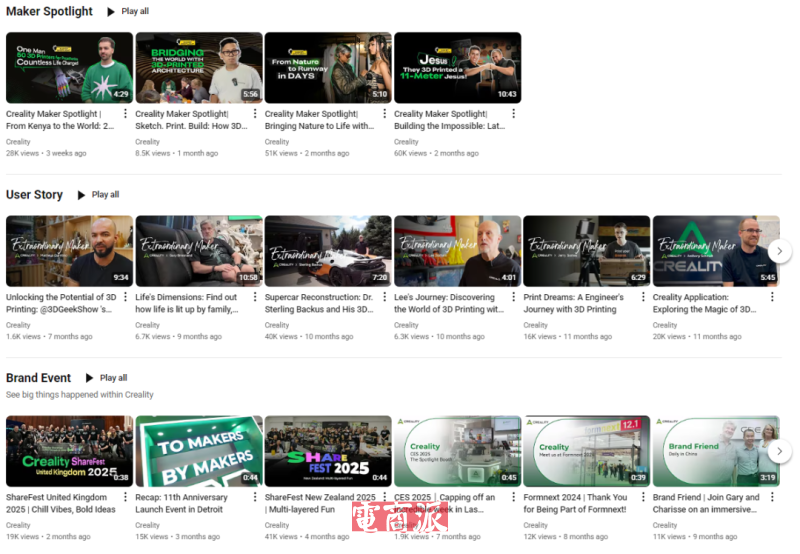 除了营收给力,创想三维打造的自主品牌(Creality)在市场上也是颇具影响力。单TikTok平台,Creality官号就有超过200万粉丝;在YouTube,账号内容更加垂直,粉丝量也有近14万;在Instagram,Creality还建立起了本土账号矩阵,面向西语、葡萄牙语等用户做更地道的营销。