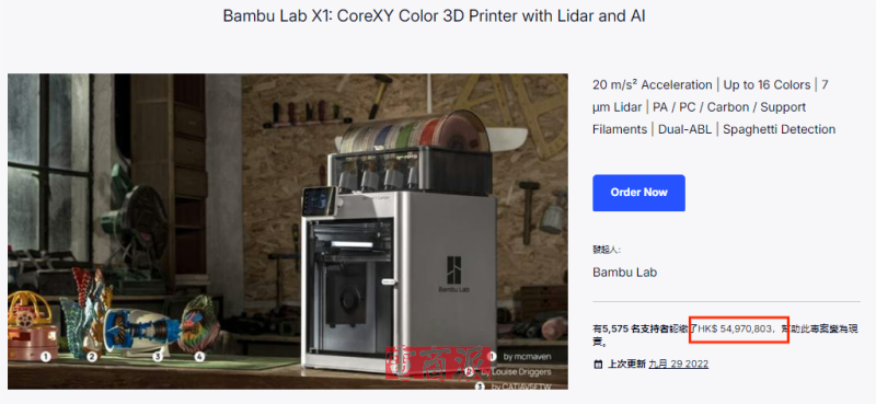 拓竹科技首款打印机众筹数千万元 图源:Kickstarter