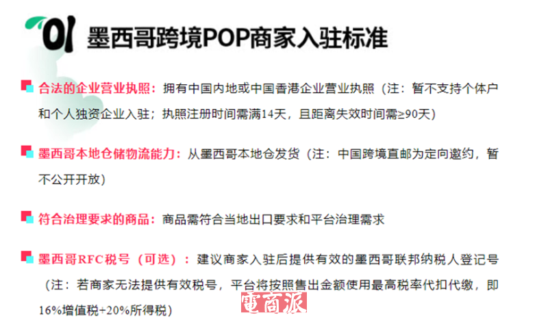 墨西哥跨境POP商家入驻标准 图源:TikTok Shop拉美电商