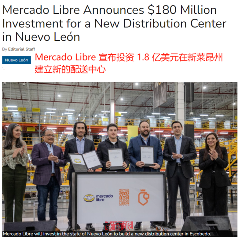 自进入墨西哥市场以来,美客多每年都会制定一个投资计划,且一年更比一年多,2025年的总投资金额就比2024年多了38%。今年3月,该巨头又宣布在墨西哥新莱昂州投资1.8亿美元,约合人民币13亿元,在埃斯科韦多地区建立一个新配送中心。此举旨在优化墨西哥北部地区的电商物流网络,为当地商家提供仓储和运输等支持政策。