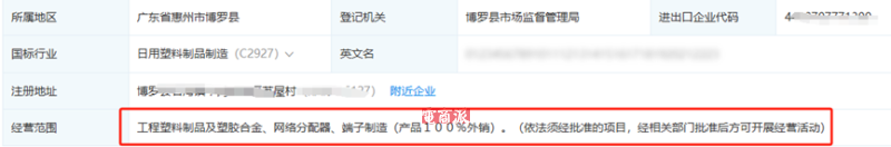 天眼查数据显示,惠州华讯公司成立于1998年8月,位于博罗石湾,是一家拥有27年历史的老牌制造企业,经营范围包括工程塑料及塑料合金制品、网络分配器、端子制造,生产的商品100%外销。