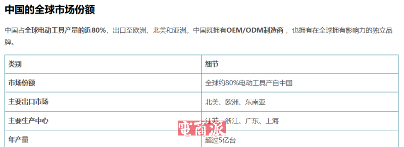 值得一提的是,凭借完善的产业链、丰富的劳动力资源以及强大的制造能力,中国在全球电动工具产业中占据着举足轻重的地位,贡献了全球约80%的电动工具产能。