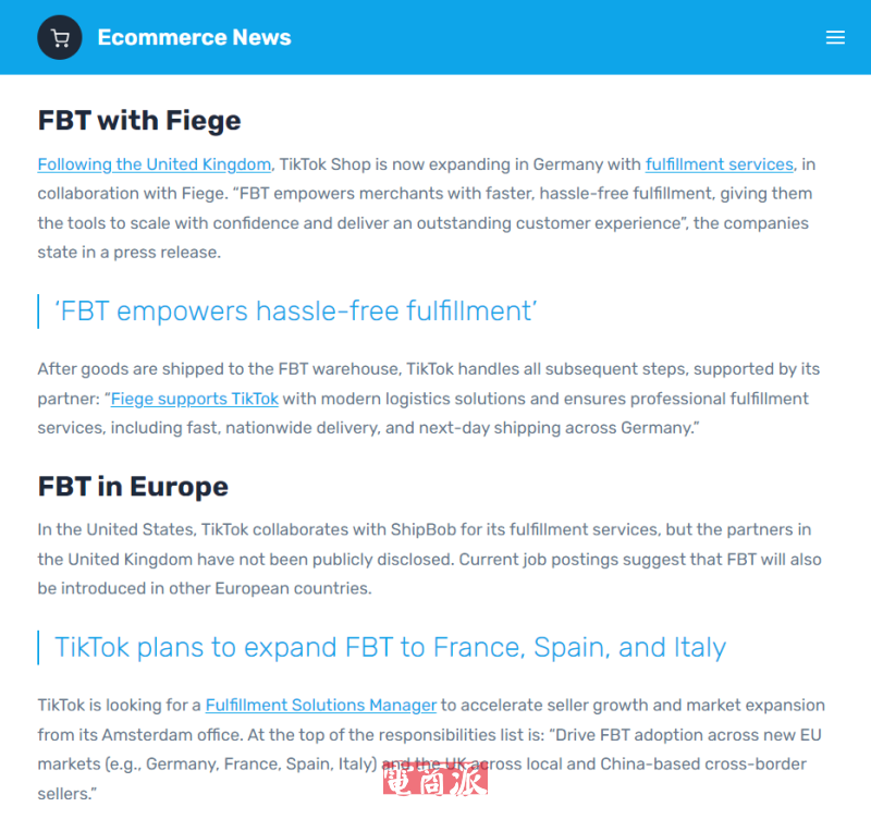 TikTok Shop于2025年春季在德国上线,与法国和意大利同步推出,使约7200万欧洲用户能够使用TikTok购物功能。尽管在德国的初期反响较为平淡,但这一情况与英国等市场的早期表现相似。随着FBT服务的引入,TikTok希望进一步推动平台商业化进程。