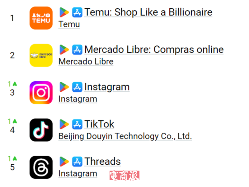 Temu位列巴西应用下载榜第一 图源:AppMagic