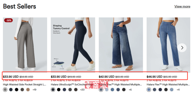 明确产品定位之后就需要锁定消费者群体,Halara将目光聚焦在将追求健康生活方式、注重运动休闲的女性消费者。在价格上也与市面上常见的同品类产品做出差异化,凭借自身的供应链优势主打高性价比,价格多位于20-50美元之间,迅速获得了消费者的喜爱与认可,成功打开了海外市场。