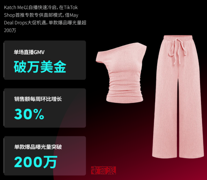 2017年成立的快时尚品牌Katch Me便是一个典型代表。在TikTok Shop英国站,Katch Me于2022年3月入驻后,仅用短短三个月时间,便实现产品销量十几万件,一跃成为英区女装类目TOP1。