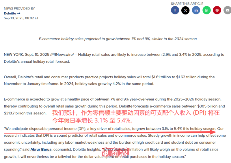 好消息是,本次德勤也同步释放出了积极的信号,预测消费者可支配个人收入在本季会增长3.1%至5.4%,虽然通胀可能会限制零售销售的实际增长量,但名义消费额将因此继续扩大。