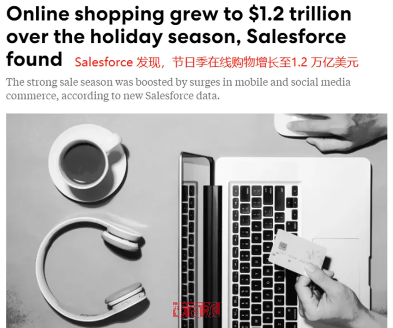 据人工智能CRM公司Salesforce公布的报告显示,在2024年11月1日—12月31日的假日购物季,全球电商市场表现不仅好于预期,相较上一年同期增长了3%,甚至在金额上还创下了历史纪录——在线销售额达到了1.2万亿美元。