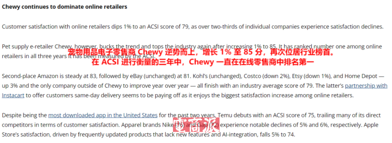 Chewy客户满意度第一 图源:theacsi.org