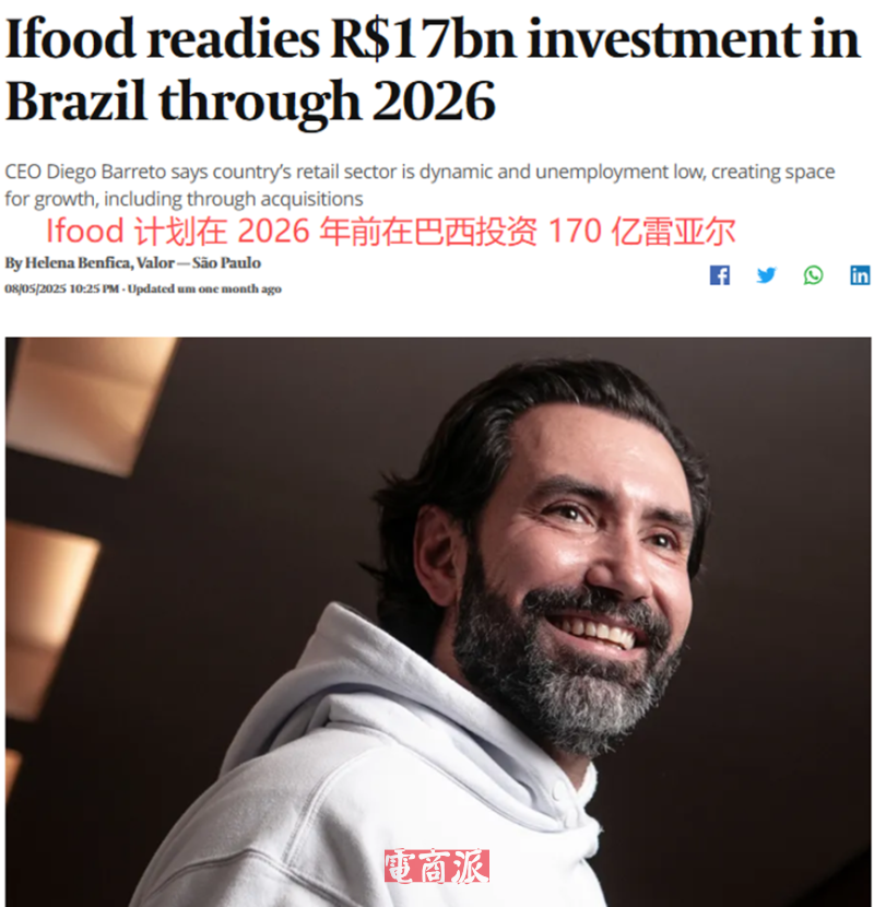 值得一提的是,今年8月,iFood还宣布,计划在2026年前在巴西投资170亿雷亚尔,主要用于提升平台流量、提高用户购买频率并拓展信贷业务。