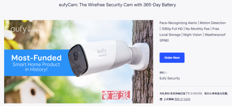 安克创新监控设备众筹百万美金 图源:Kickstarter
